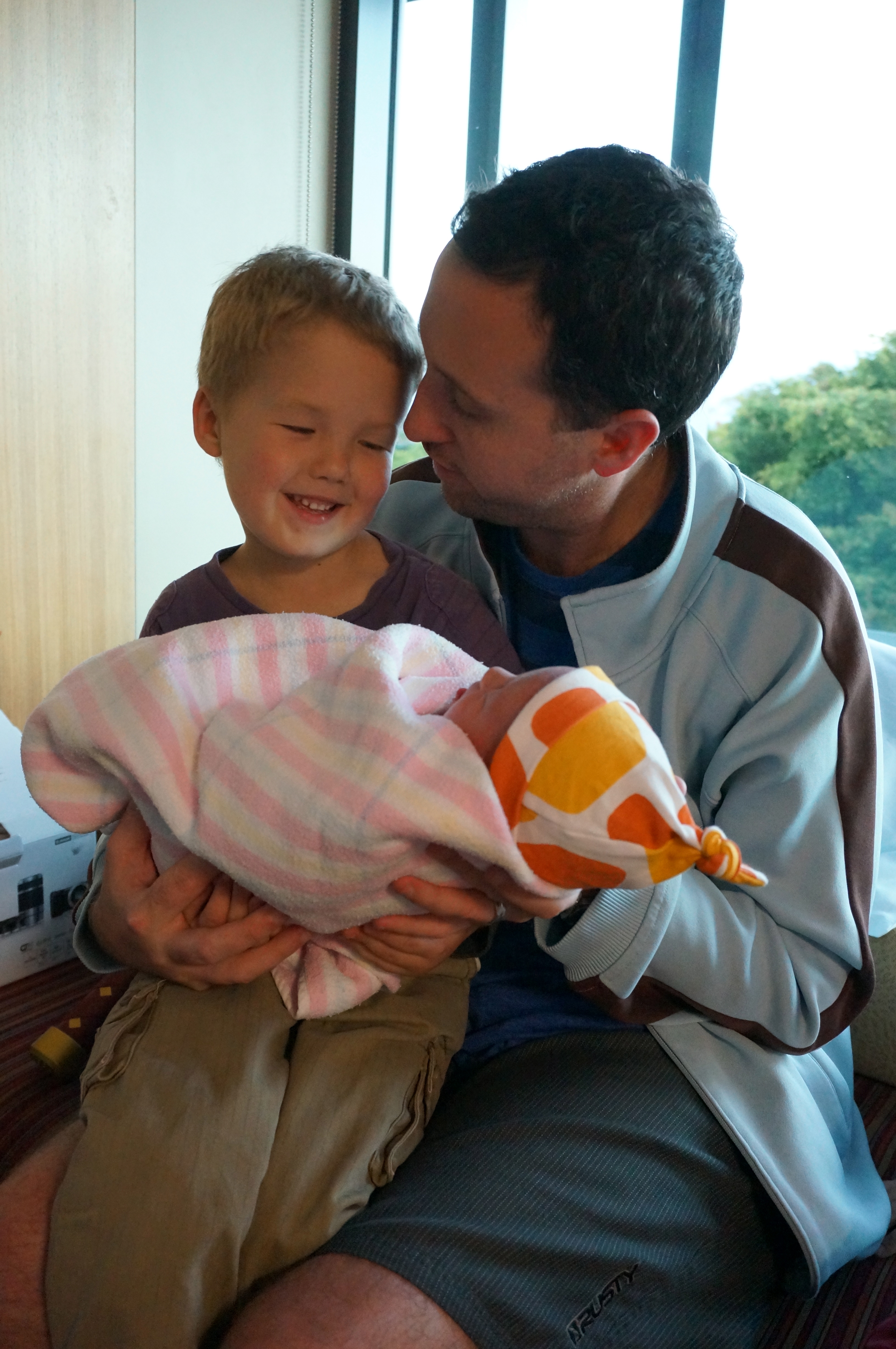 On the morning of induction my husband and I calmly made our way to the hospital, comparing it to our previous two trips when I had been in labour by this point. I even applied some make-up though I have no idea why I thought that it would last through labour. We arrived and met up with my sister, Paulina, who has been present at all the boy’s births. We were quickly showed to our birthing suite by our beautiful midwife, Nikki.