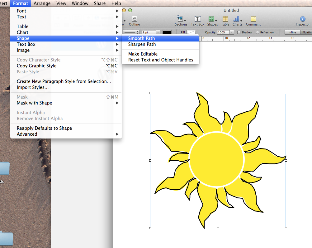 - Choose the free draw tool from the shapes menu. Trace around the edges of the image. To soften the lines use Format > Shape > Smooth Paths.